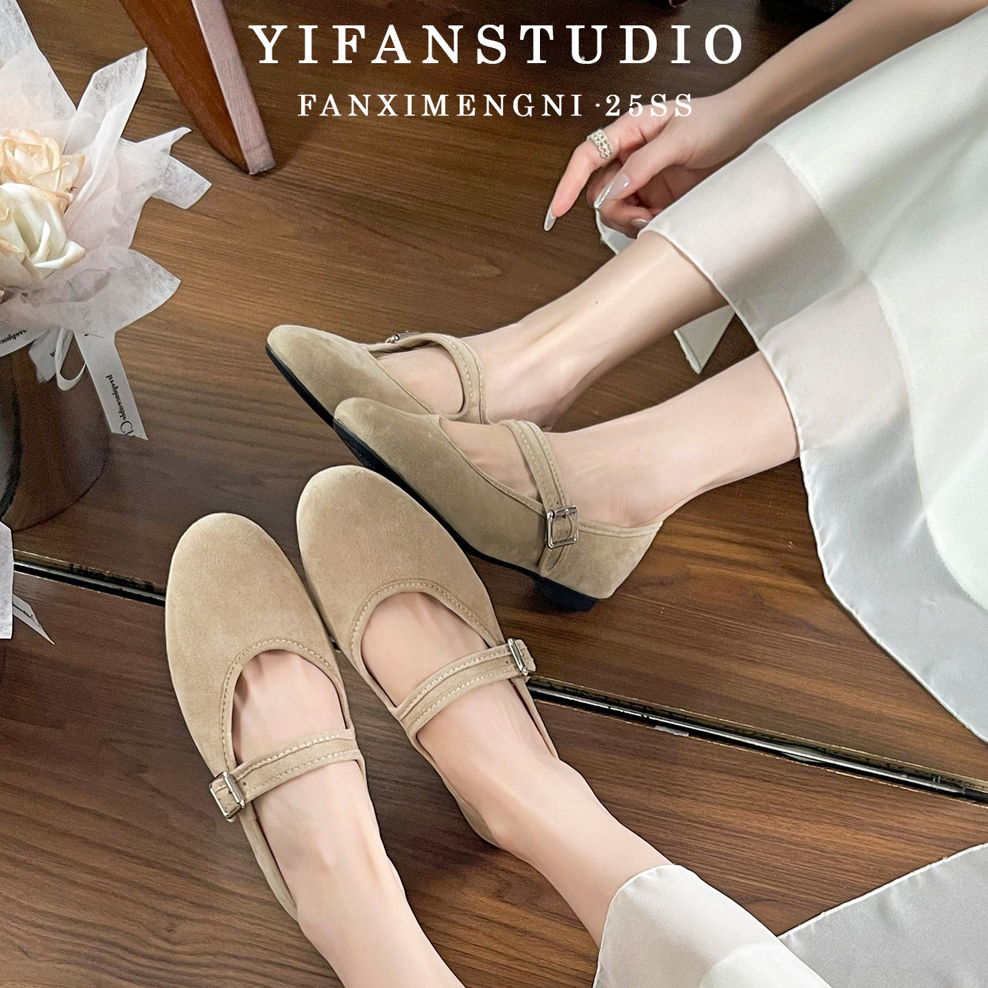 子温柔晚晚鞋 浅口鞋 女2025新款 春秋裸色尖头蝴蝶结内增高平底单鞋