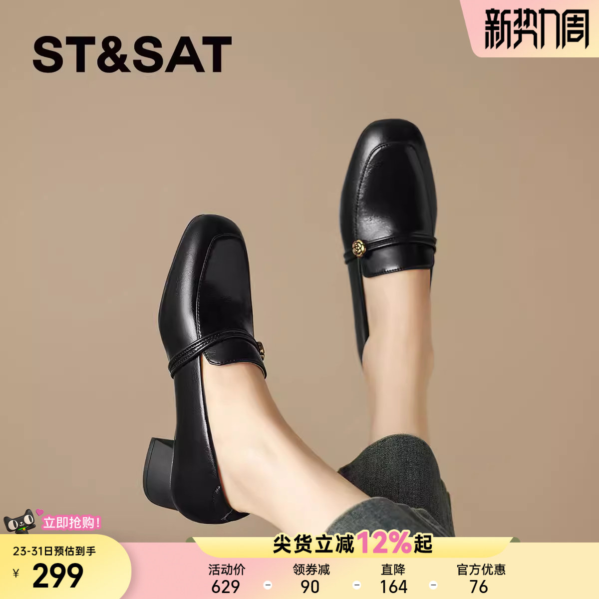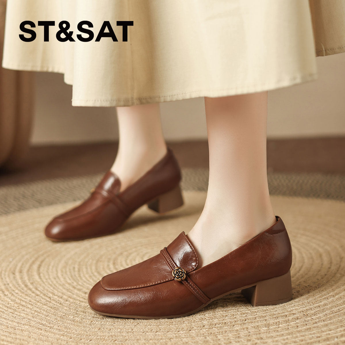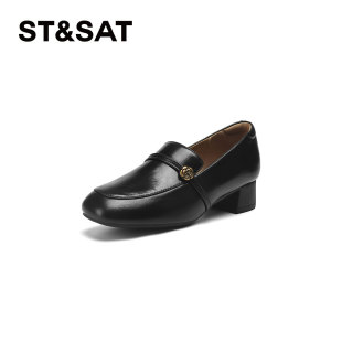 真皮粗跟小皮鞋 女2025新款 通勤 山茶花厚底英伦风乐福鞋 星期六爆款