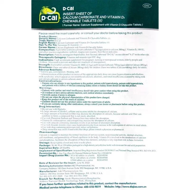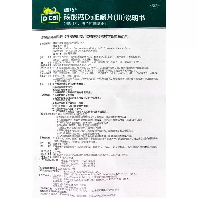 120片 III 1瓶妇女老年人儿童补钙 迪巧碳酸钙D3咀嚼片 D-Cal