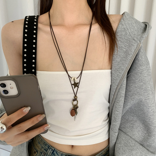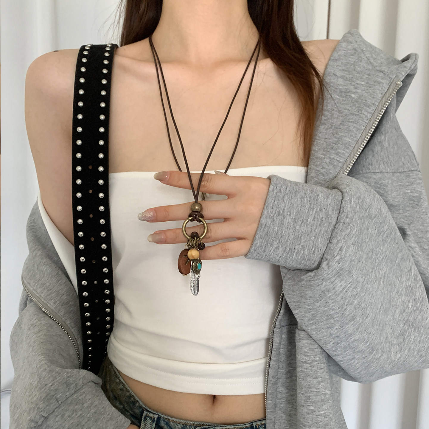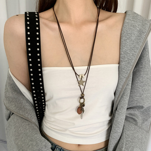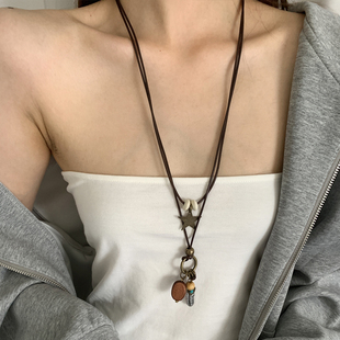 复古民族风星星羽毛吊坠项链女波西米亚叠戴双层长款 毛衣链配饰潮