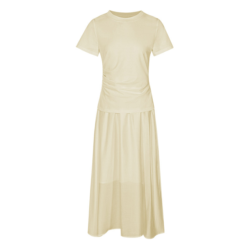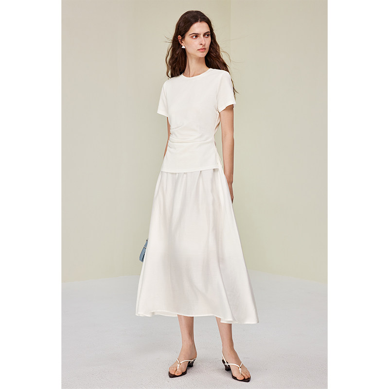 裙子 棉短袖 AEL原创莫代尔醋酸拼接设计感连衣裙女士2025新款 夏季