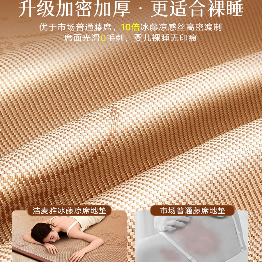 夏天冰丝凉席地垫睡垫打地铺专用神器加厚折叠藤席软垫榻榻米垫子