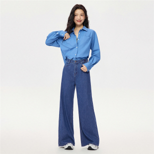 纯棉水洗中腰牛仔长裤 新款 13415160 女2026年春季 佐丹奴阔腿牛仔裤