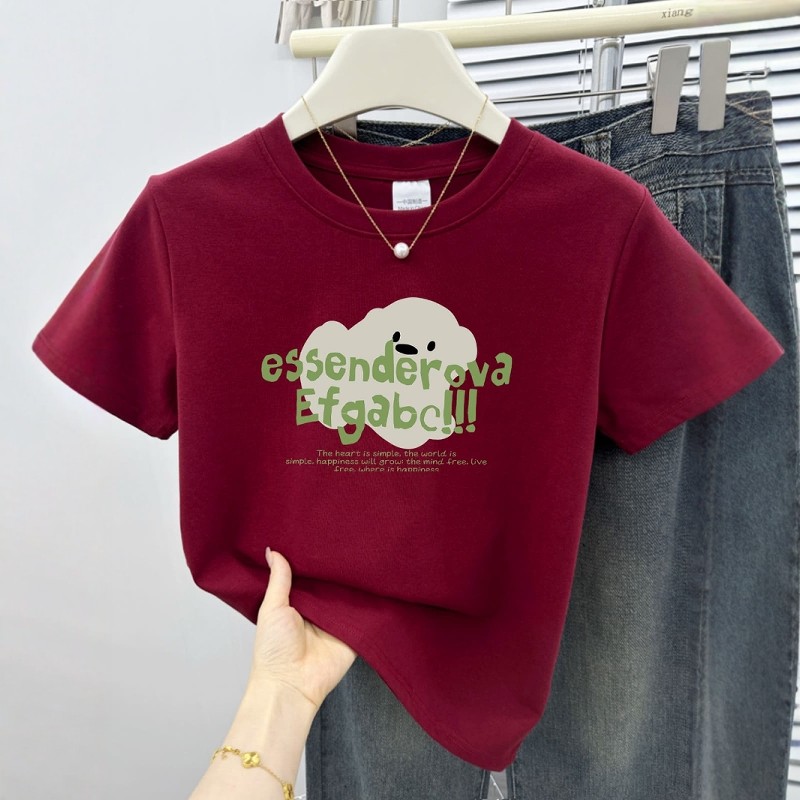 T恤小个子学院风百搭显瘦上衣ins潮 正肩短袖 可爱印花夏季 2026新款