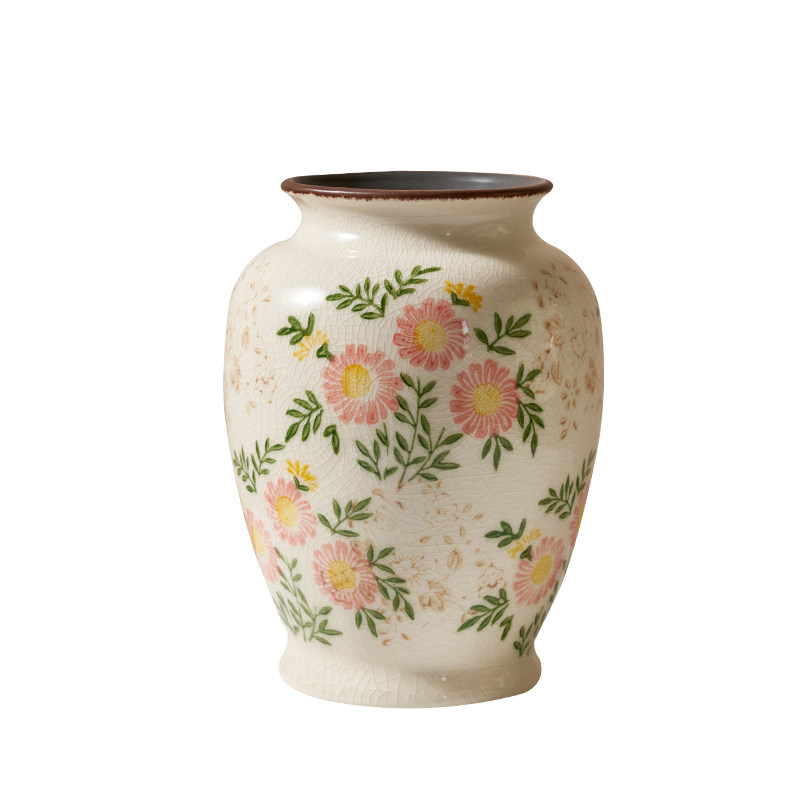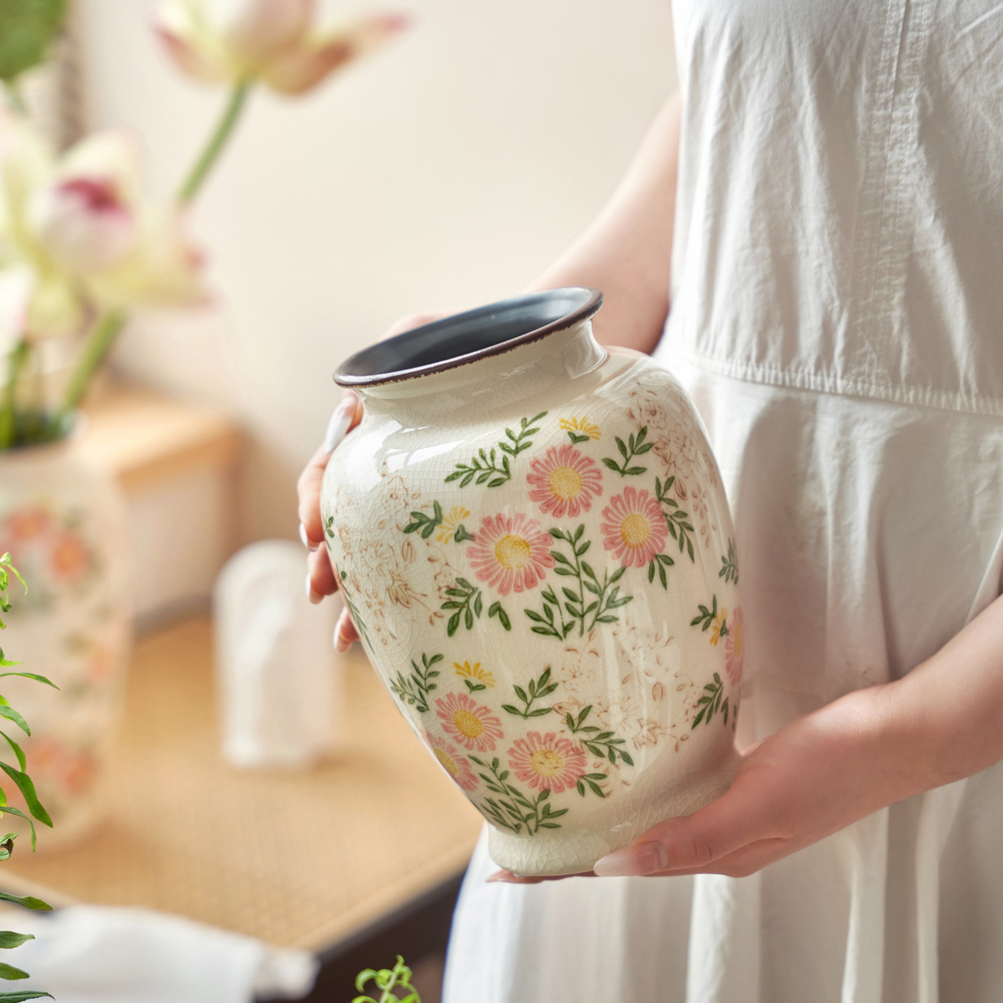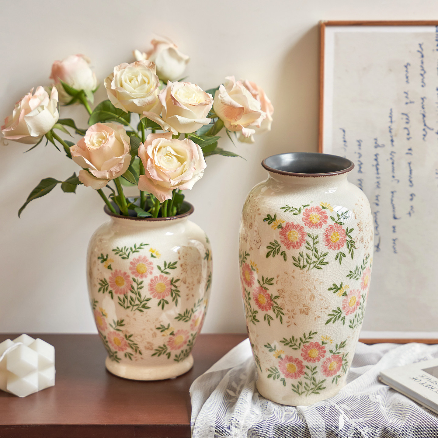 景德镇复古粗陶落地花瓶侘寂风陶瓷摆件家居民宿酒店样板间装 饰品