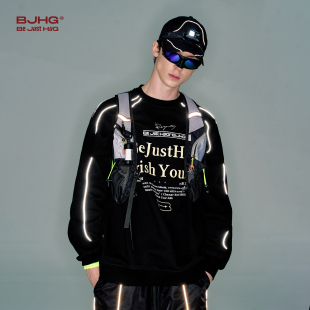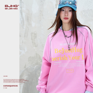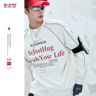 潮宽松暖皮情侣卫衣外套女 春季 BJHG不计后果美式 复古圆领卫衣男款