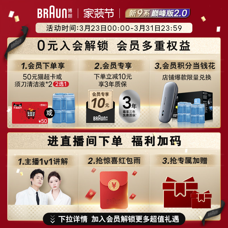 2.0电动剃须刀男吉列刮胡9797送男友 博朗9系巅峰版 政府补贴