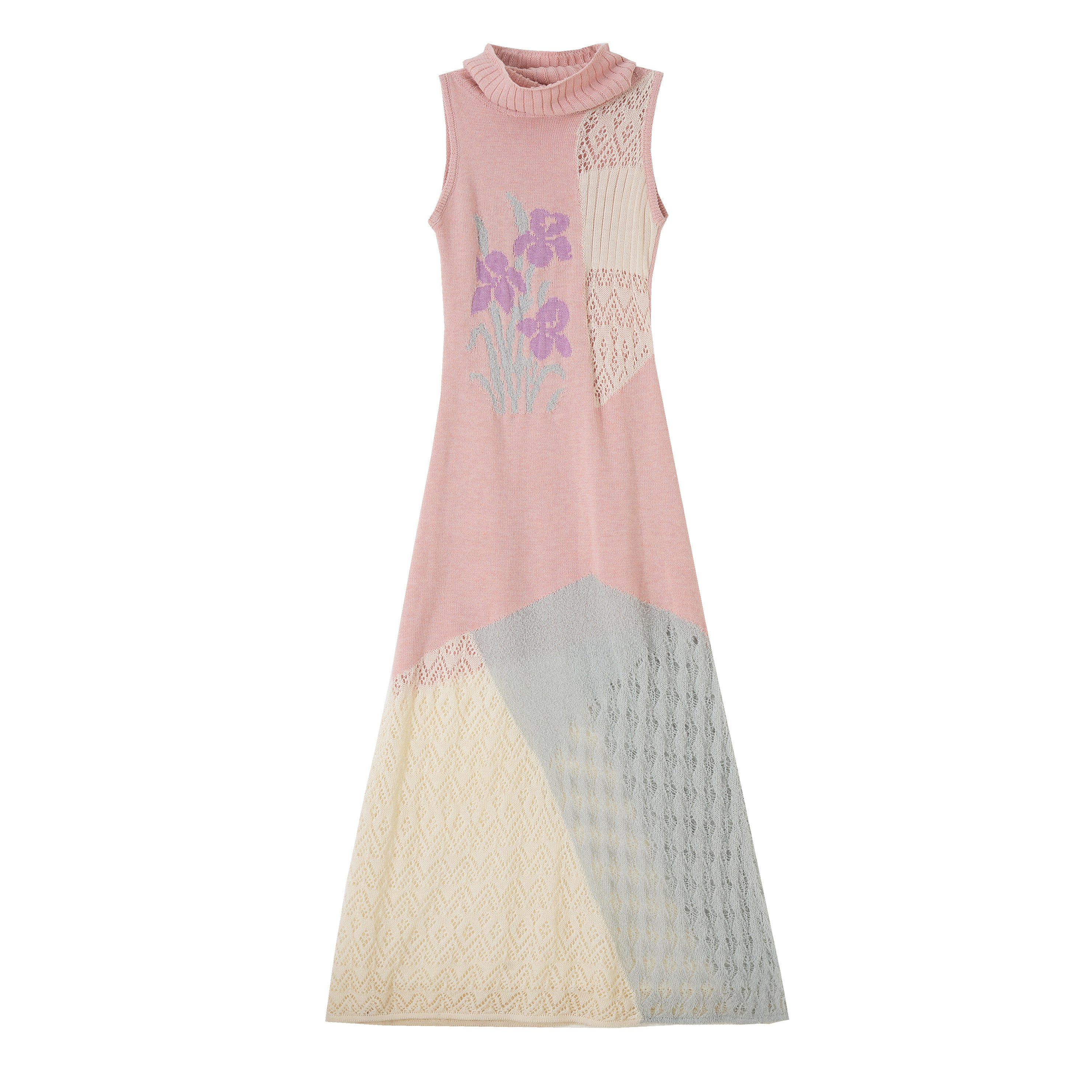 脊枝cidhiidhi2025ss原创堆堆领拼接花朵撞色无袖 针织连衣裙