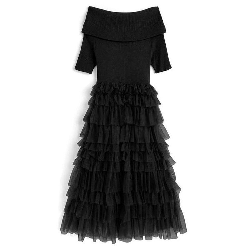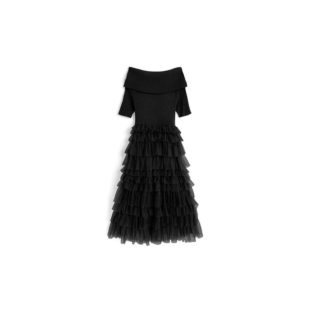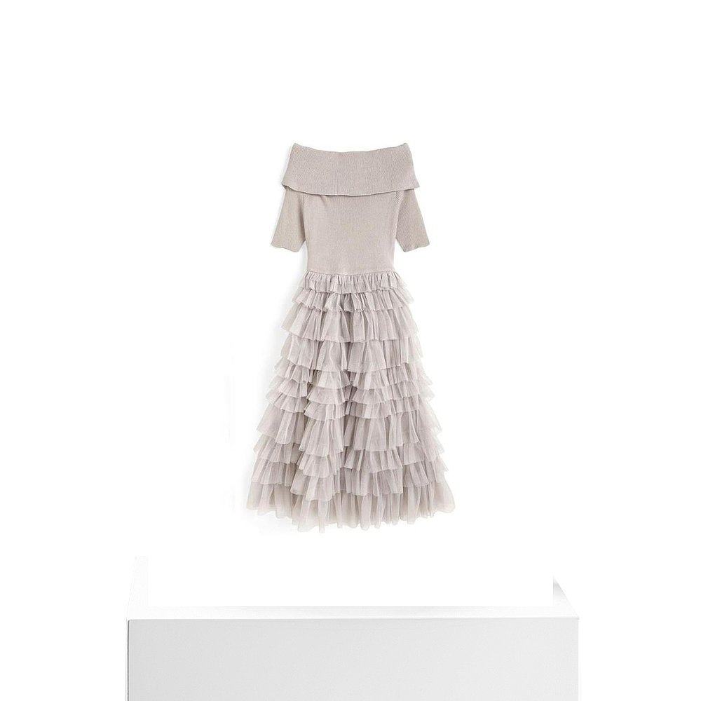 日本直邮日潮 GRL露肩针织薄纱连衣裙ru1213蕾丝荷叶边尼龙