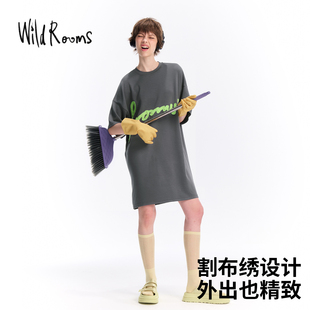 wildrooms2026春夏短袖 T恤裙女士夏字母刺绣宽松百搭上衣 中长款