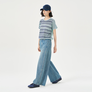商场同款 女纯棉简约长裤 2025秋季 阔腿复古牛仔拖地裤 新品 OTT