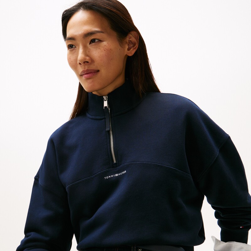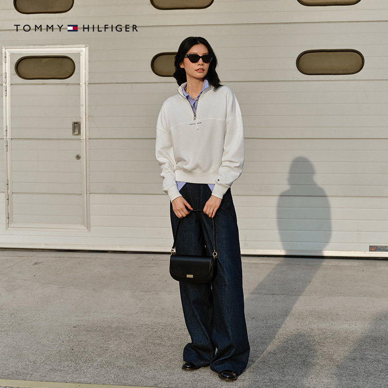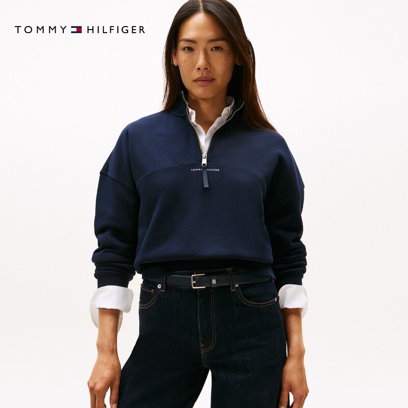 Tommy秋冬女装 潮流运动休闲风字母印花半拉链立领套头卫衣 美式