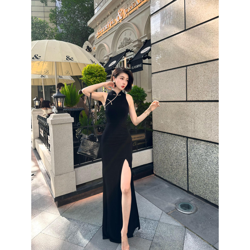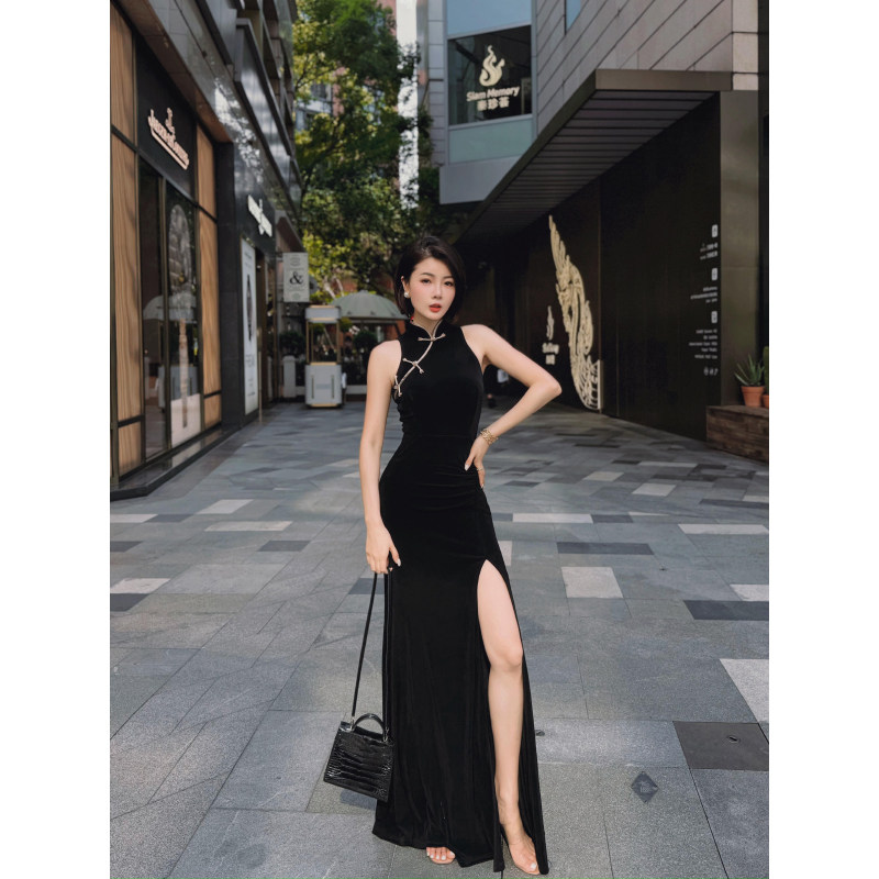 旗袍晚礼服女高级感轻奢小众高端订婚宴会气质主持2025新款 连衣裙
