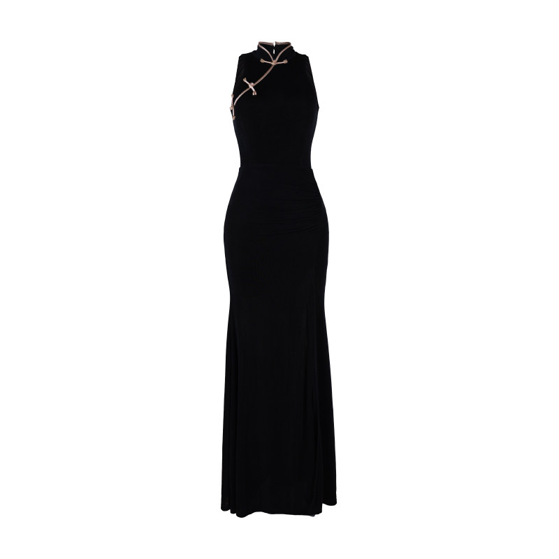 刺绣改良旗袍v领黑色鱼尾连衣裙 国风厚款 竹妃 dk自制新中式 Mimo