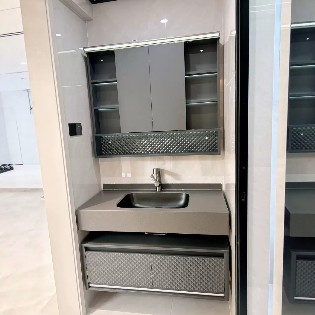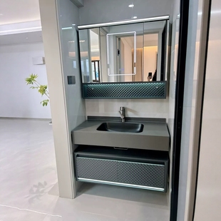 太空铝蜂窝浴室柜组合陶瓷一体盆侧边柜收纳洗漱台卫生间洗手盆柜