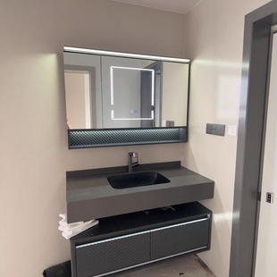 新款 浴室柜组合岩板无缝陶瓷一体盆洗漱台轻奢卫生间厕所洗手脸池