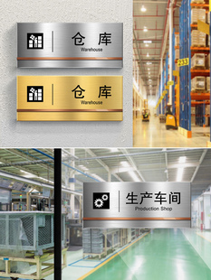 高档不锈钢标示牌工厂生产车间标识牌办公室仓库提示牌金属指示门牌订制标志牌定制创意铝板高档牌子定做墙贴