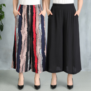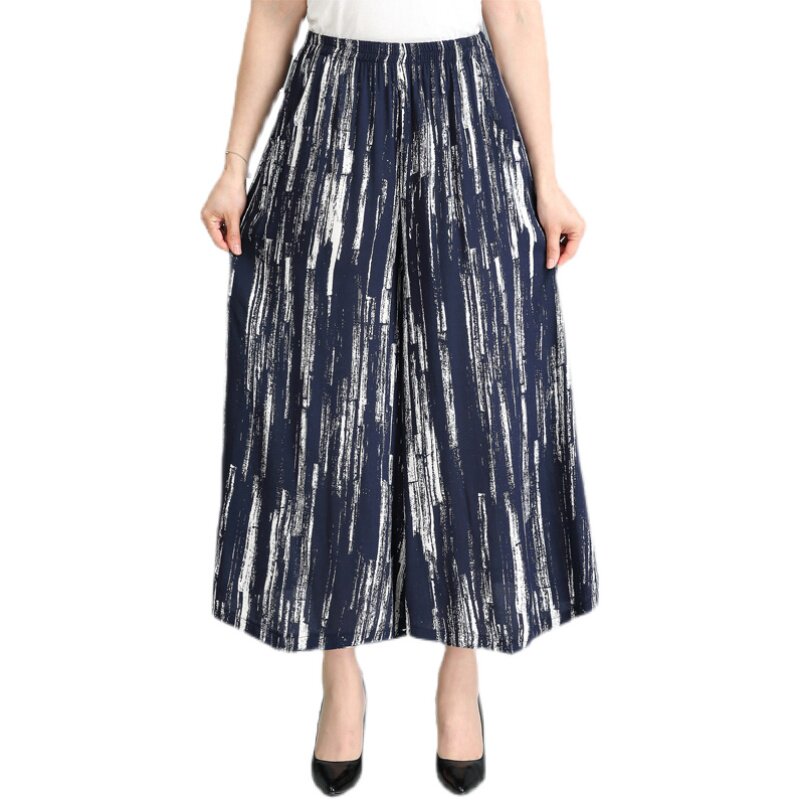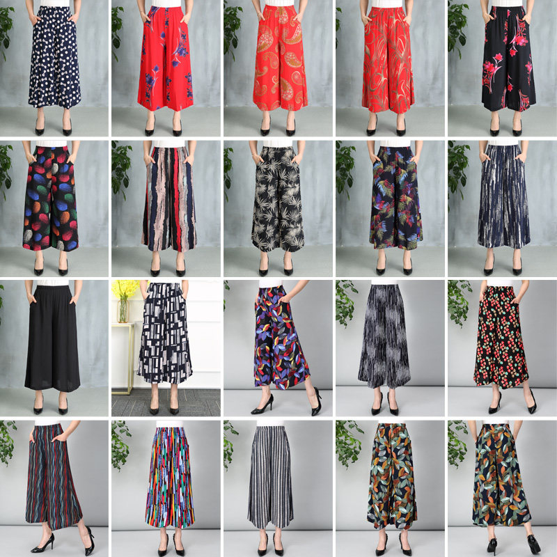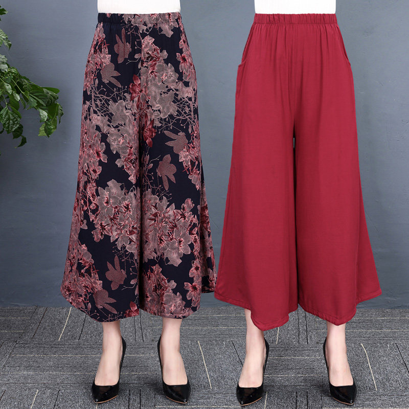 裙裤 阔腿裤 棉绸妈妈九分裤 民族风高腰大码 夏季 广场舞裤 中老年女裤