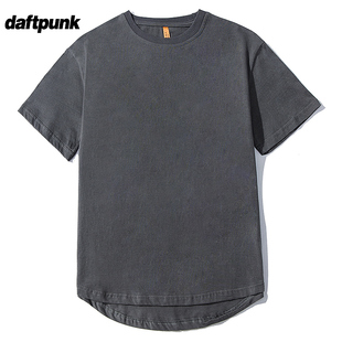 上衣 T恤圆弧下摆圆领纯棉学生男女加长款 高街基础纯色打底衫 短袖