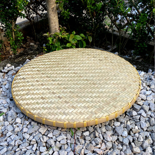 竹编簸箕家用头层竹青簸箕饺子盘圆形竹编制品晾晒编织装 饰筛子