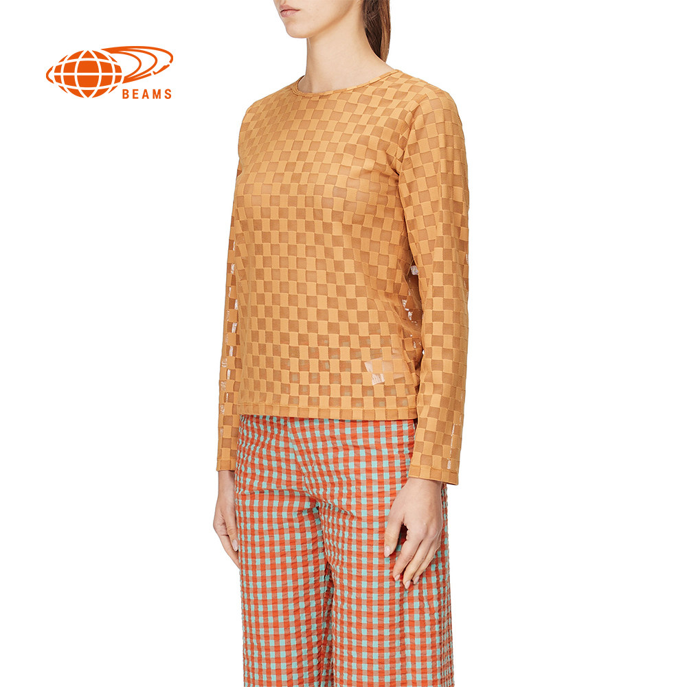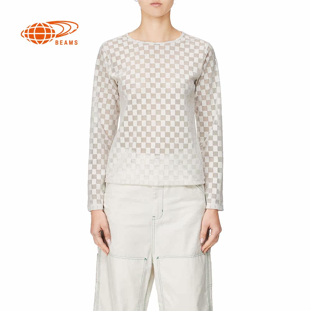 女款 长袖 t恤呼吸方格交叠领轻量速干秋季 轻功马拉松运动跑步长袖