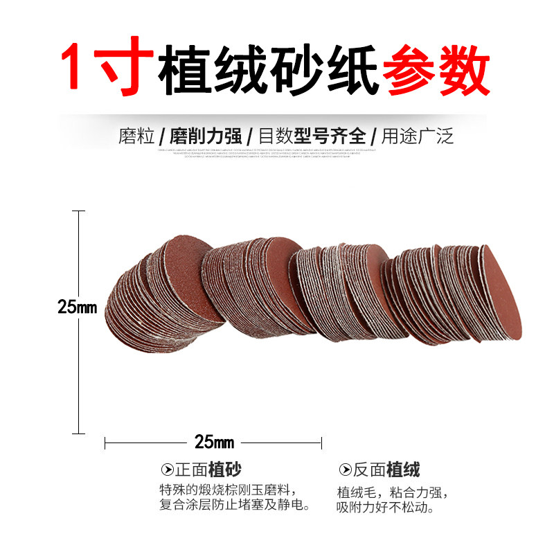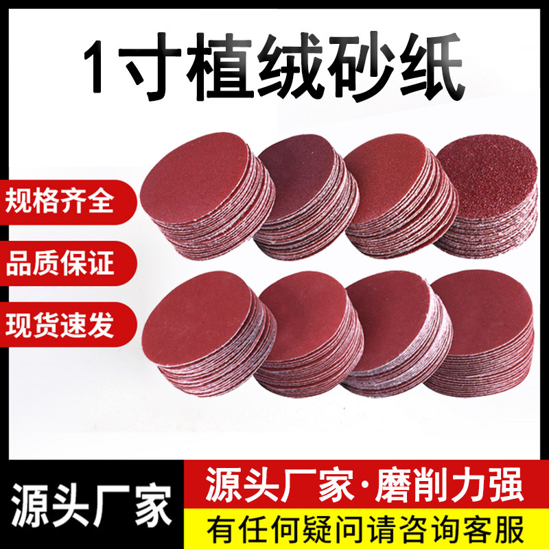 1寸植绒砂纸片25mm30mm干磨金牛白砂红砂打磨抛光气动背绒 砂纸片