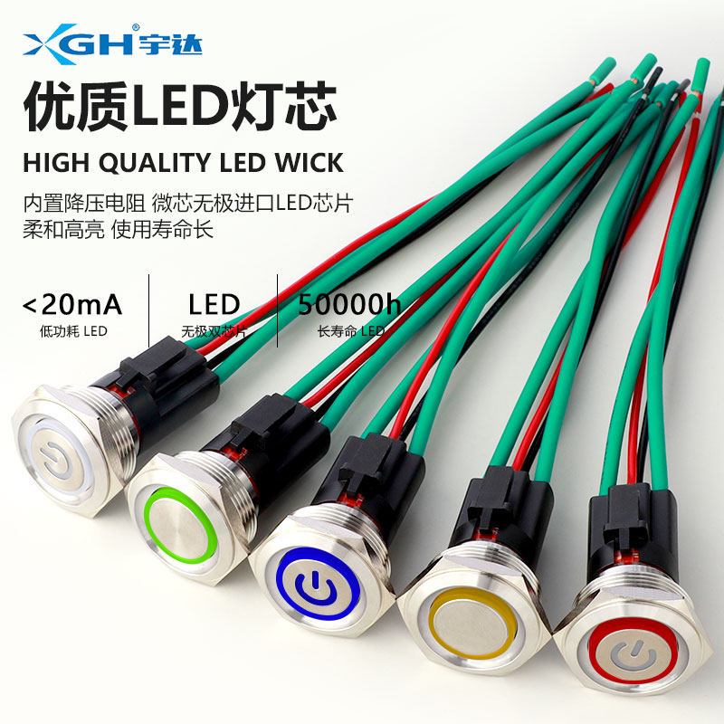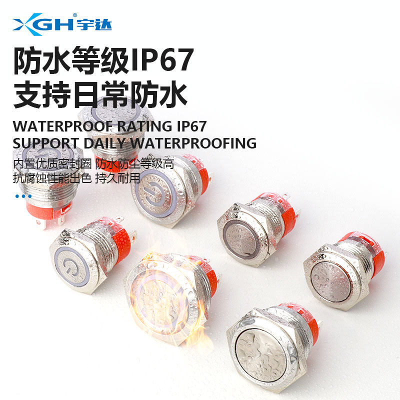一佳金属按钮大电流防水YJ GQ22A带灯18A小圆形启动防水开关22mm