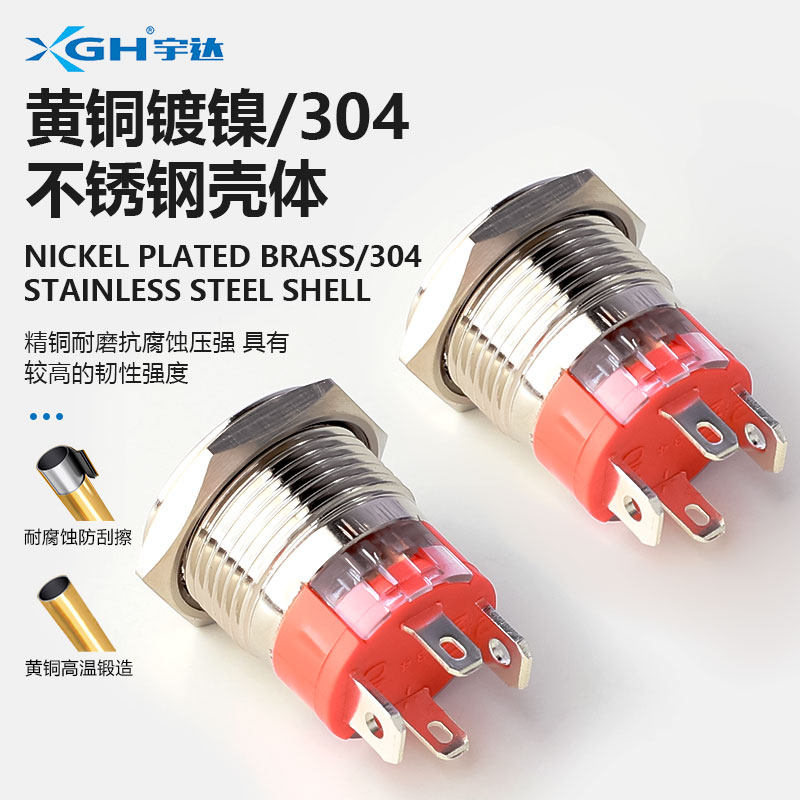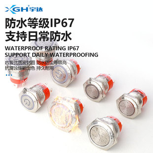 12mm金属按钮带灯开关自复位自锁高头小型圆形点动电源开机按键防