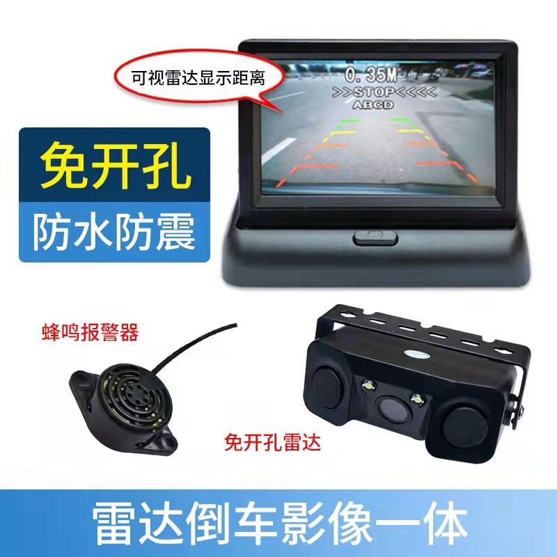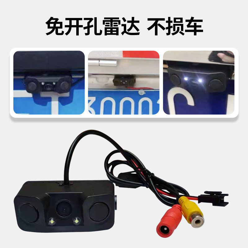 可视倒车雷达免开孔三合一雷达摄像头一体蜂鸣声喇叭倒车影像