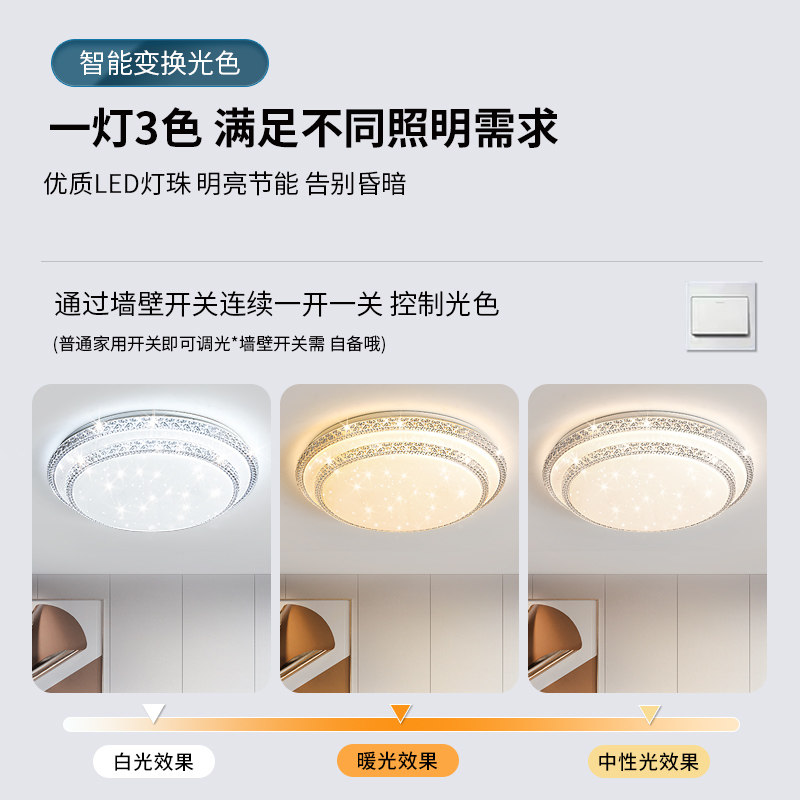 全光谱led吸顶灯护眼客厅灯圆形卧室灯餐厅阳台简约现代中山灯具