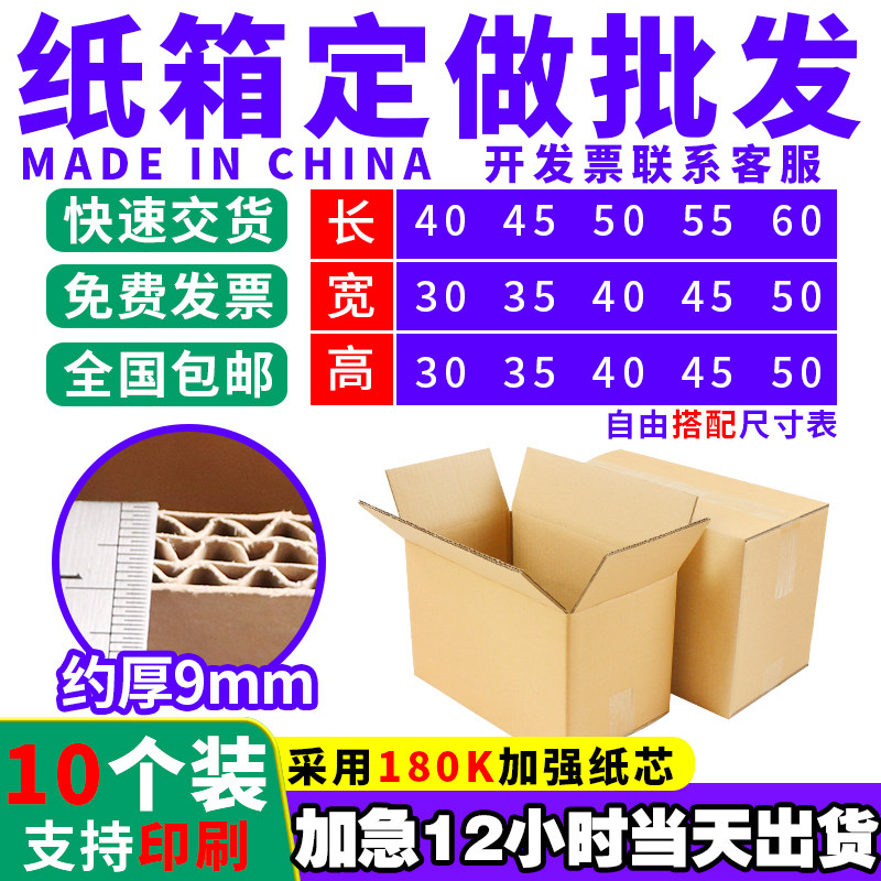 淘宝纸箱打包箱快递物流包装 纸箱批发加厚特硬纸盒邮政纸壳箱定制