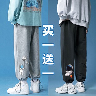 抽绳学生束脚裤 买一送一秋夏季 韩版 子男宽松百搭潮流休闲运动裤 裤