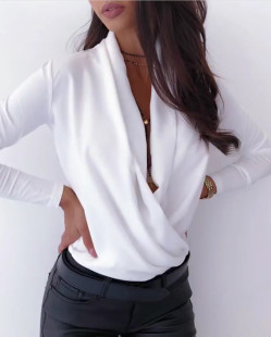 Solid CollarTop Long Women Swing Sleeve DeepV Amazon Shirt