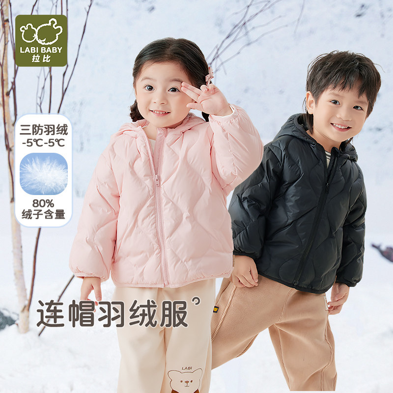 儿童保暖连帽外套三防白鸭绒防寒羽绒服 冬季 拉比童装 羽绒服2024款