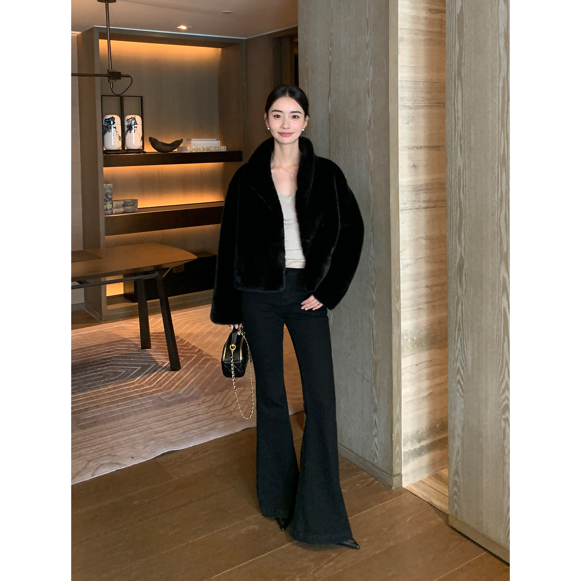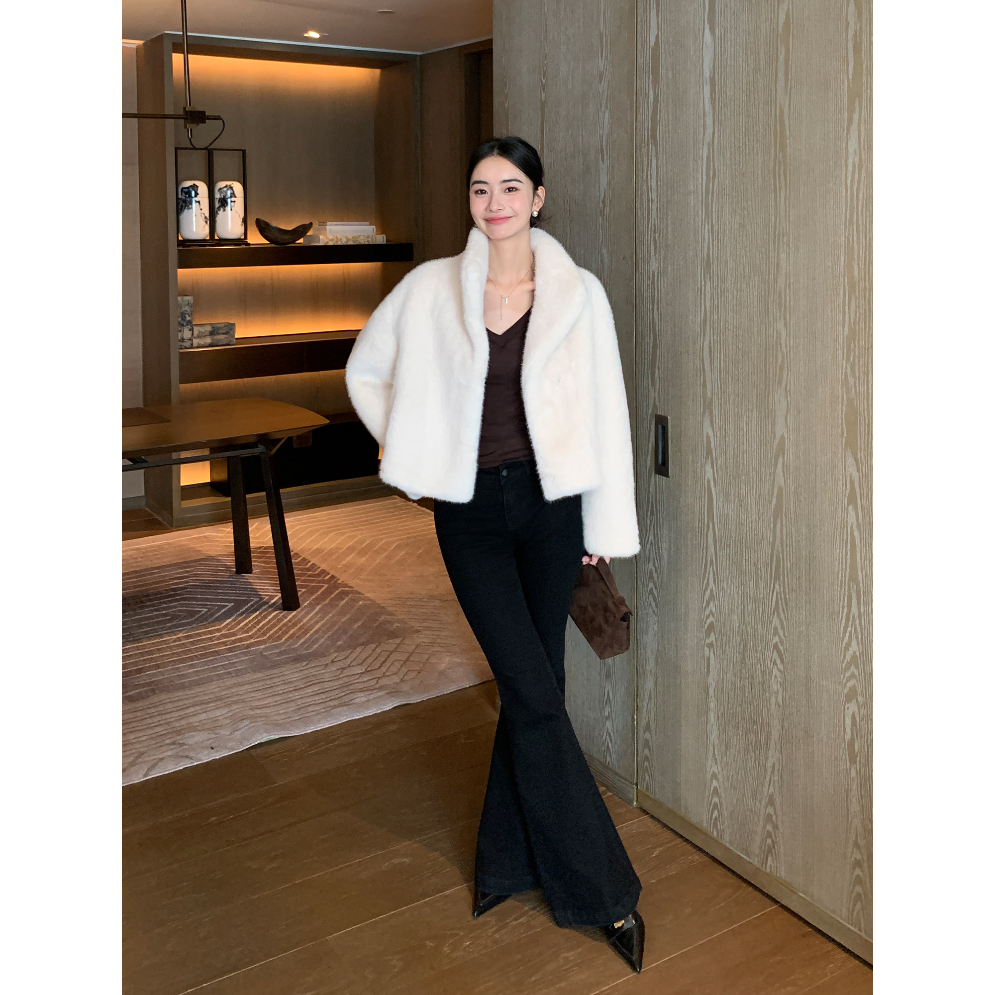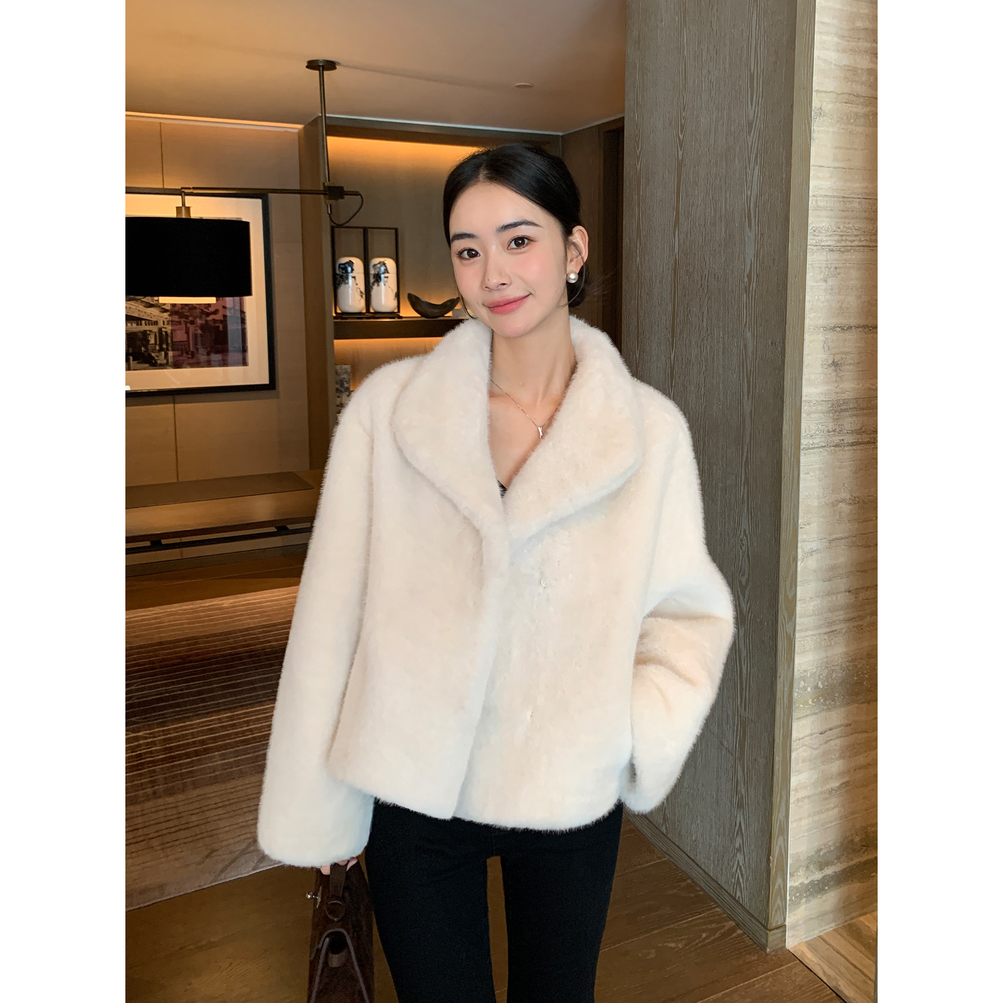 仿水貂毛外套女短款 现货7.5折 立领环保毛绒皮草 Lin Maven