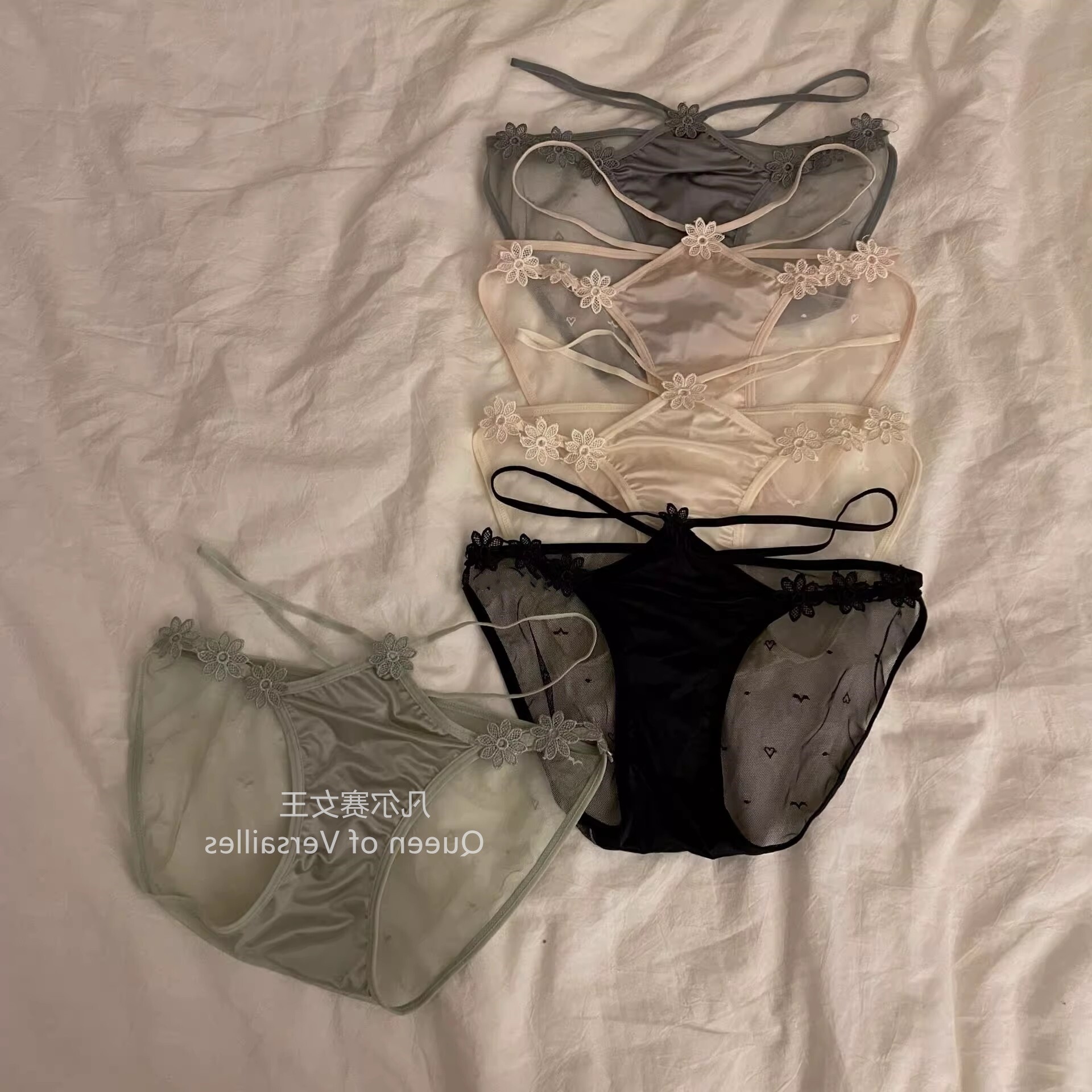 日系性感缎面内裤 女生 女士青年绿色低腰纯欲蕾丝透气辣妹三角裤