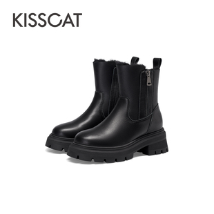 雪地靴女 加绒加厚真皮短靴增高冬靴时尚 KISSCAT接吻猫秋冬季 新款
