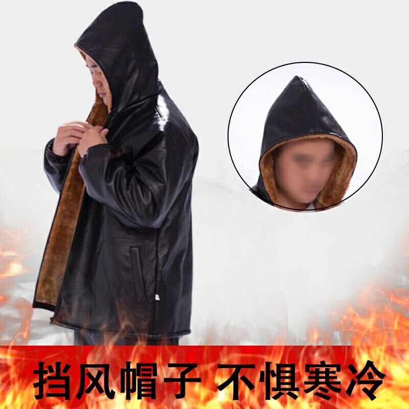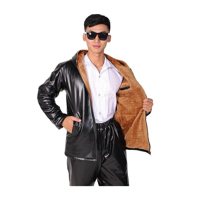 男士 皮裤 套装 皮衣皮裤 加绒加厚防水防油工作服宽松 男2024新款
