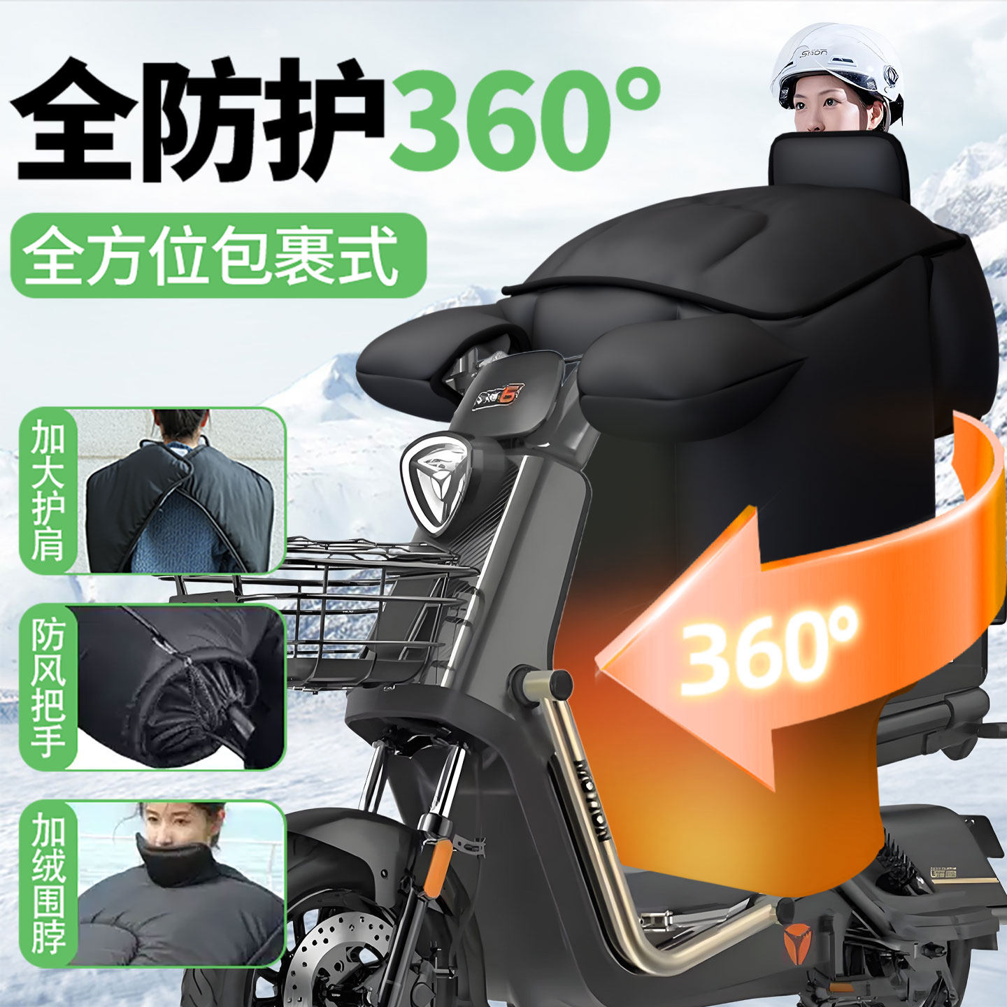 电动车挡风被冬季 电瓶摩托车通用双防水防风罩 加绒加厚全包斗篷式