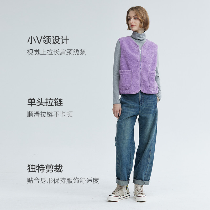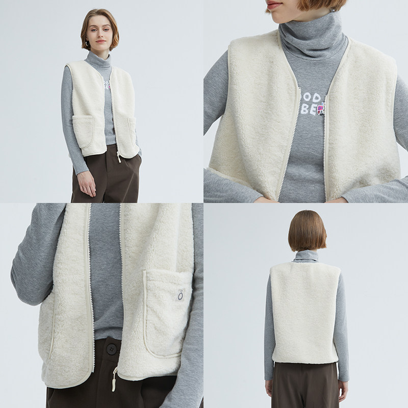 马甲背心上衣 米白色短款 北欧时刻仿羊羔毛马夹外套女2025春季 新款