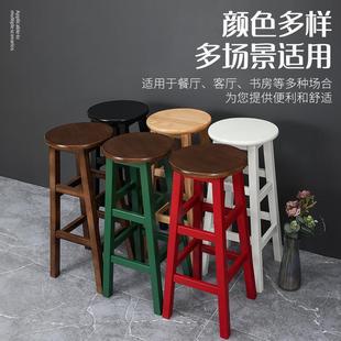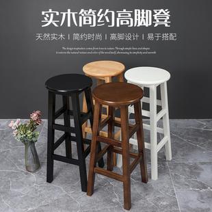 实木高脚凳子梯凳前台奶茶酒吧椅商用简约复古凳家用圆凳成人高凳