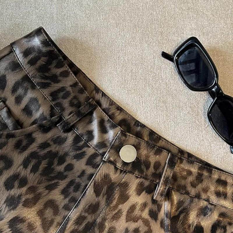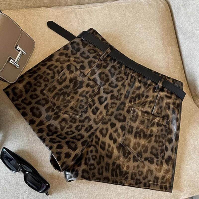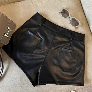 a高级设计感小个子a字休闲热裤 女秋冬2025新款 子 短裤 豹纹pu皮修身