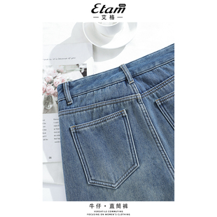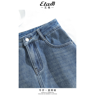 阔腿裤 艾格高腰垂感直筒牛仔裤 宽松拖地百搭时尚 新款 女2026年春季