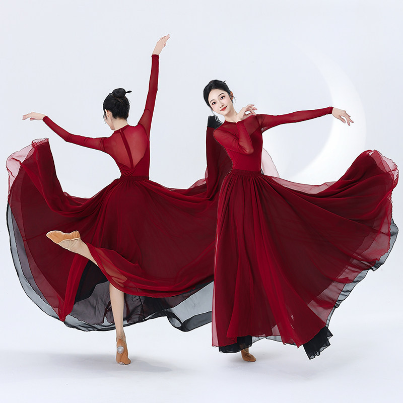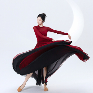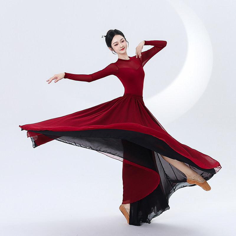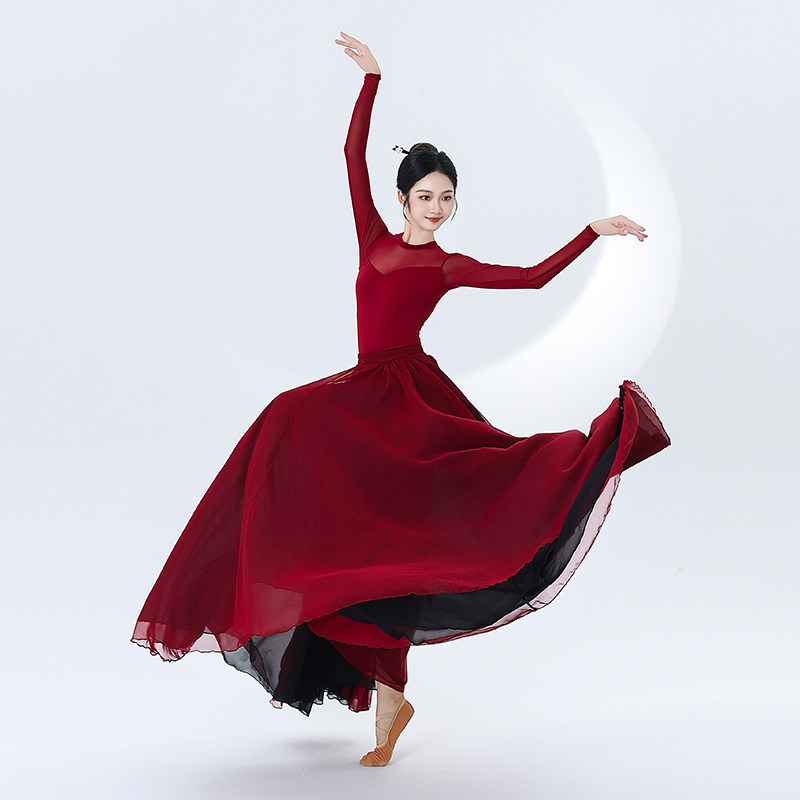 中国民族古典舞蹈纱裙演出服装 艺考练功服飘逸大摆裙子双层720度