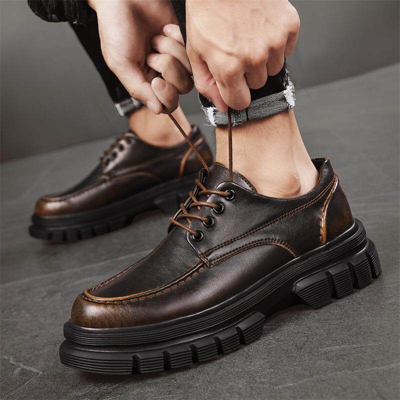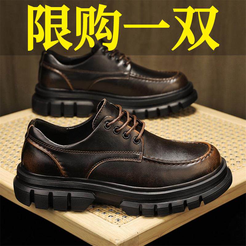 鞋 旗牌 低帮工装 真皮商务休闲皮鞋 实心底英伦增高马丁靴 公牛男鞋
