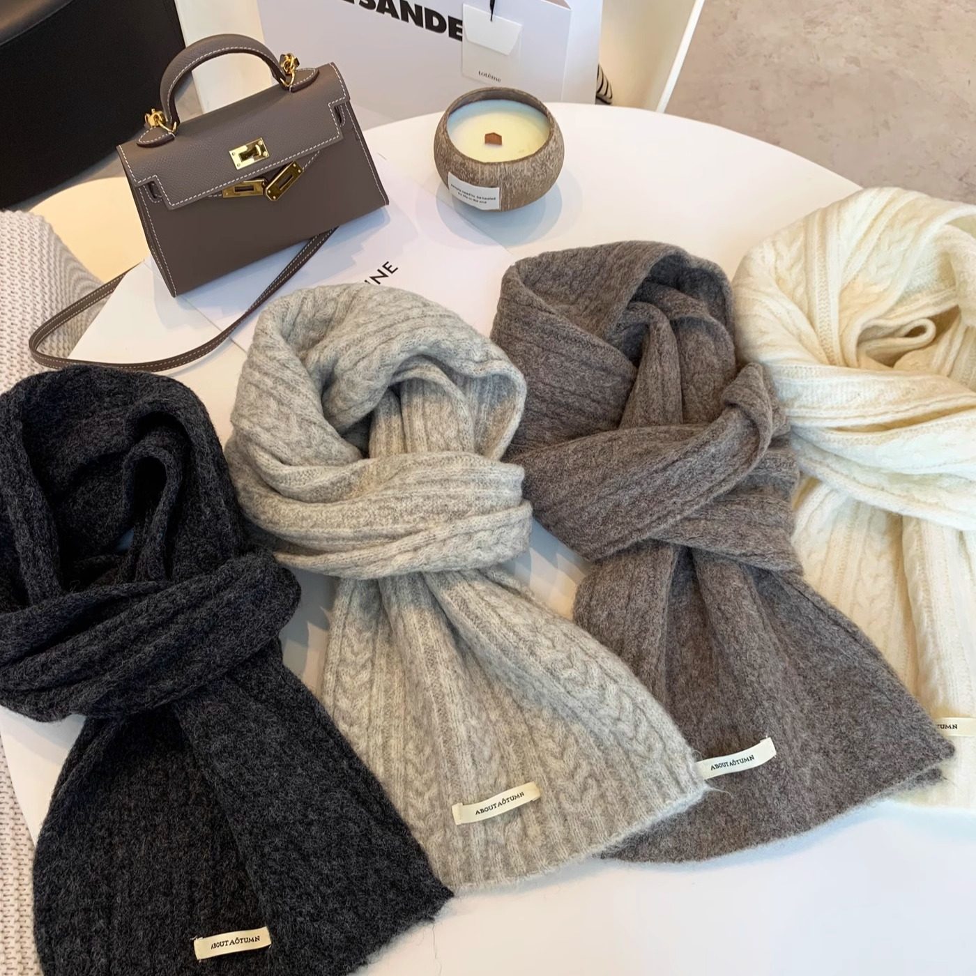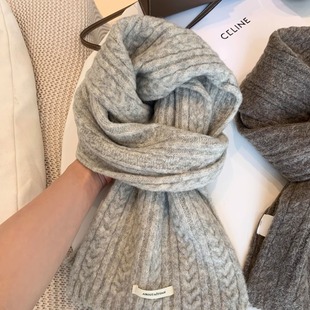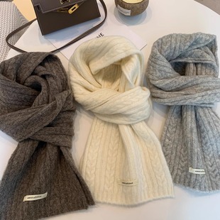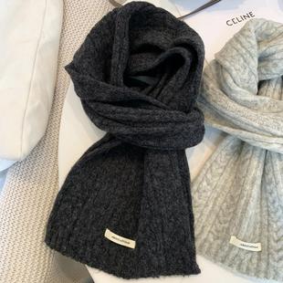 软糯羊毛针织围巾女秋冬季 高级感温柔系复古麻灰情侣围脖 2025新款