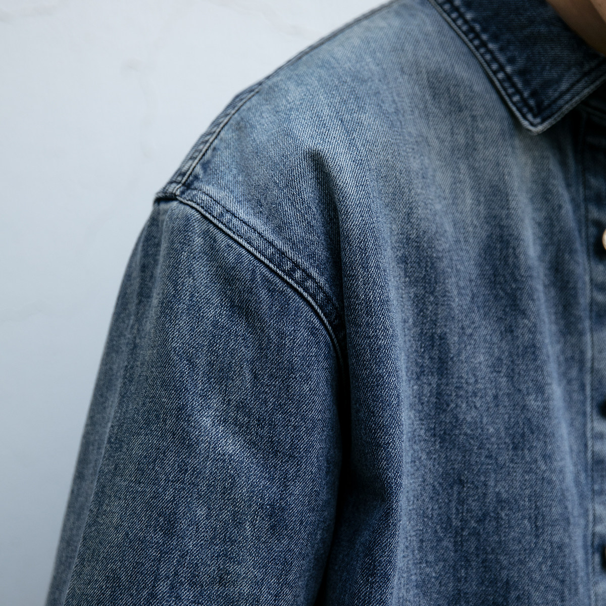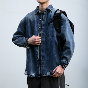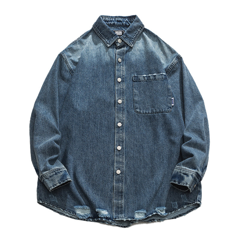 牛仔衬衫 复古单口袋工装 丹宁休闲长袖 修身 马登工装 衬衣男秋季 美式