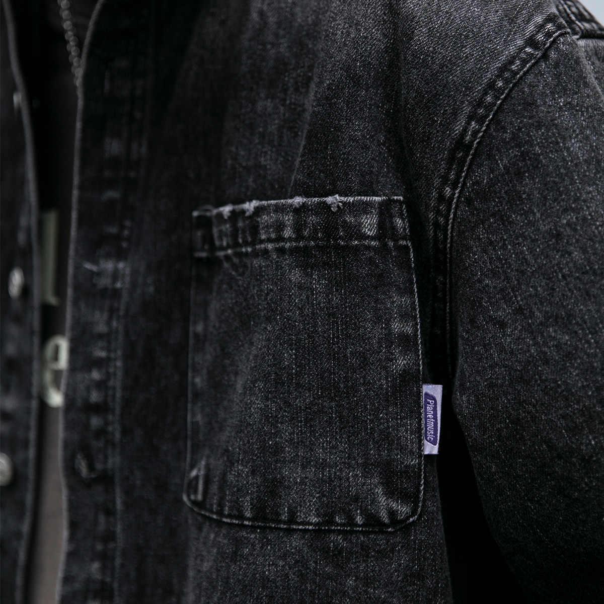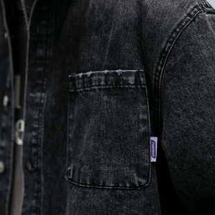 牛仔宽松深灰色衬衣 男潮流机车款 阿美咔叽全棉重水洗工装 牛仔衬衫