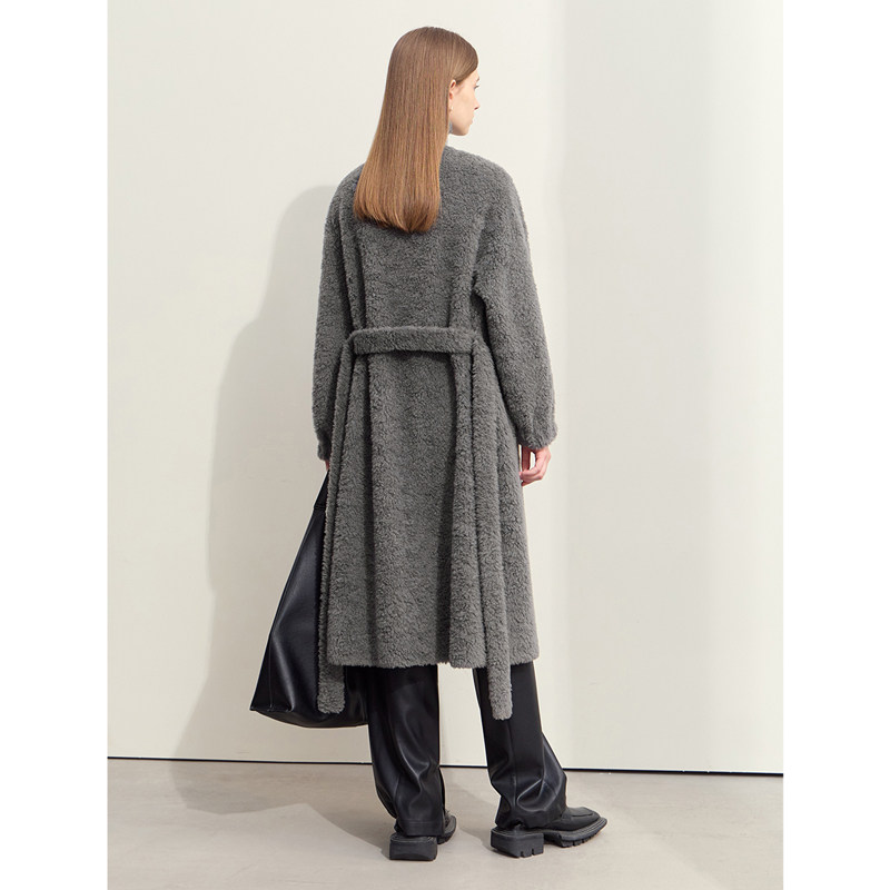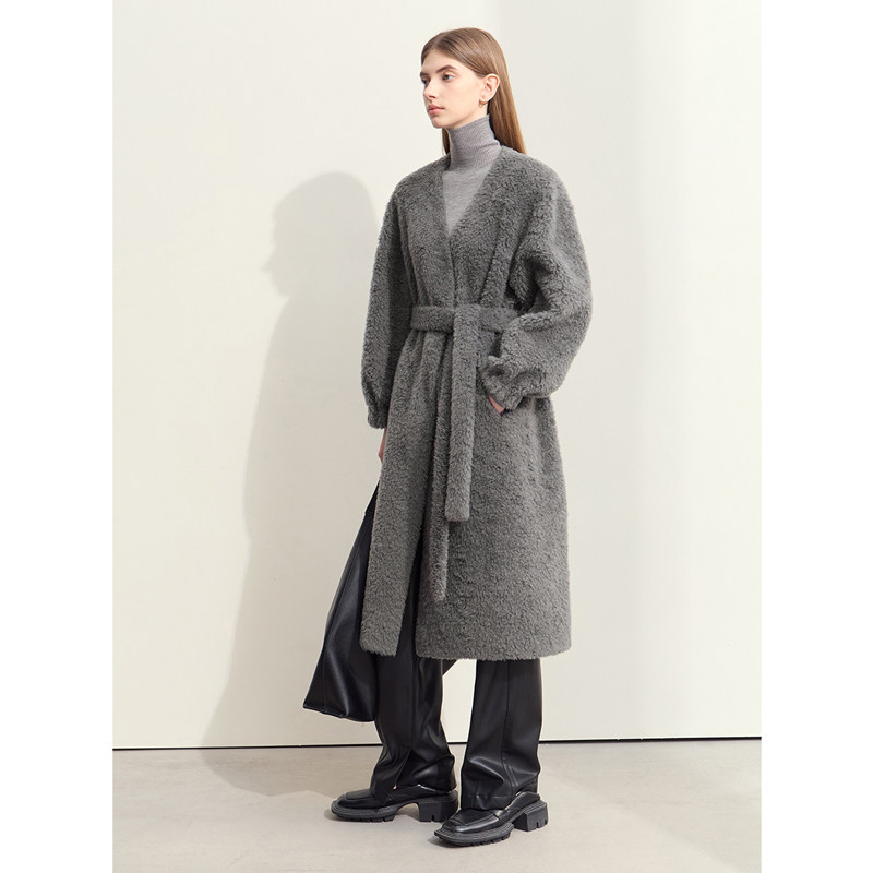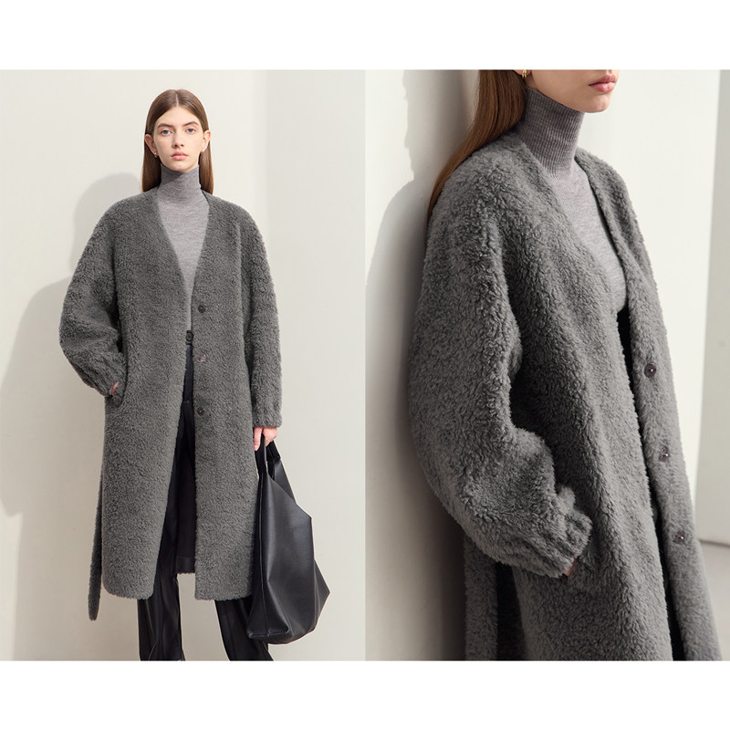 2025冬新款 麂皮绒羔羊绒大衣高级宽松 皮毛一体羊羔毛外套女中长款