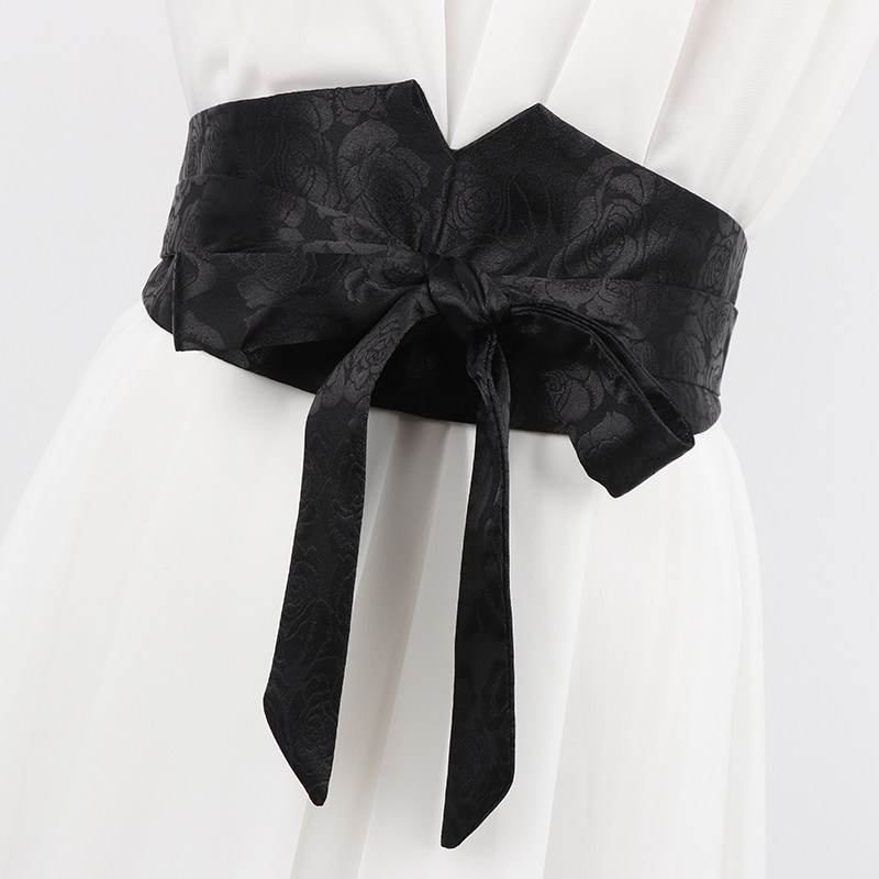 汉服宽腰封女装 国风布腰带复古百搭黑绿色 饰连衣裙子束腰古风中式